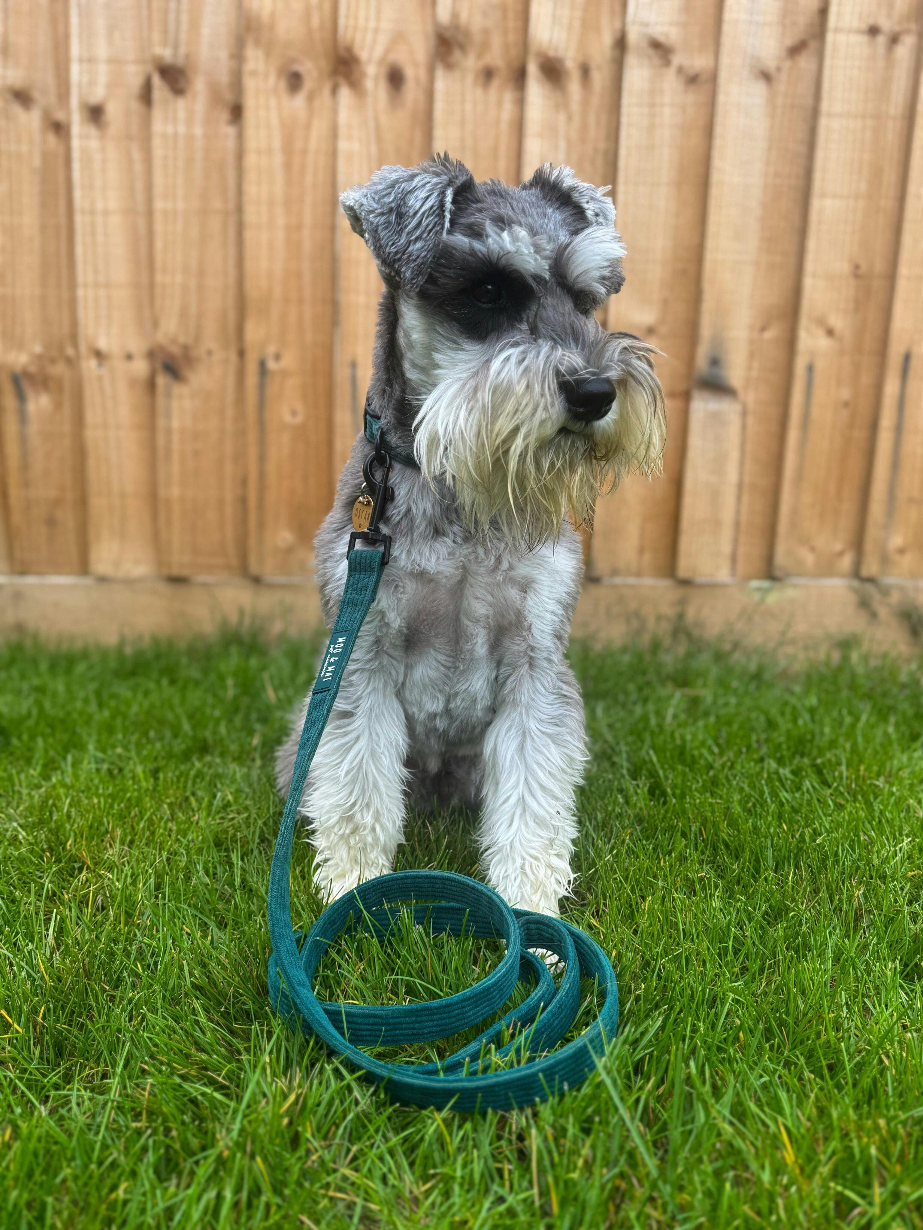 Add a little touch of luxury to your walkies with this stunning teal emerald cord lead, features include a padded lead handle and a D-ring to attach your poo bag holder!