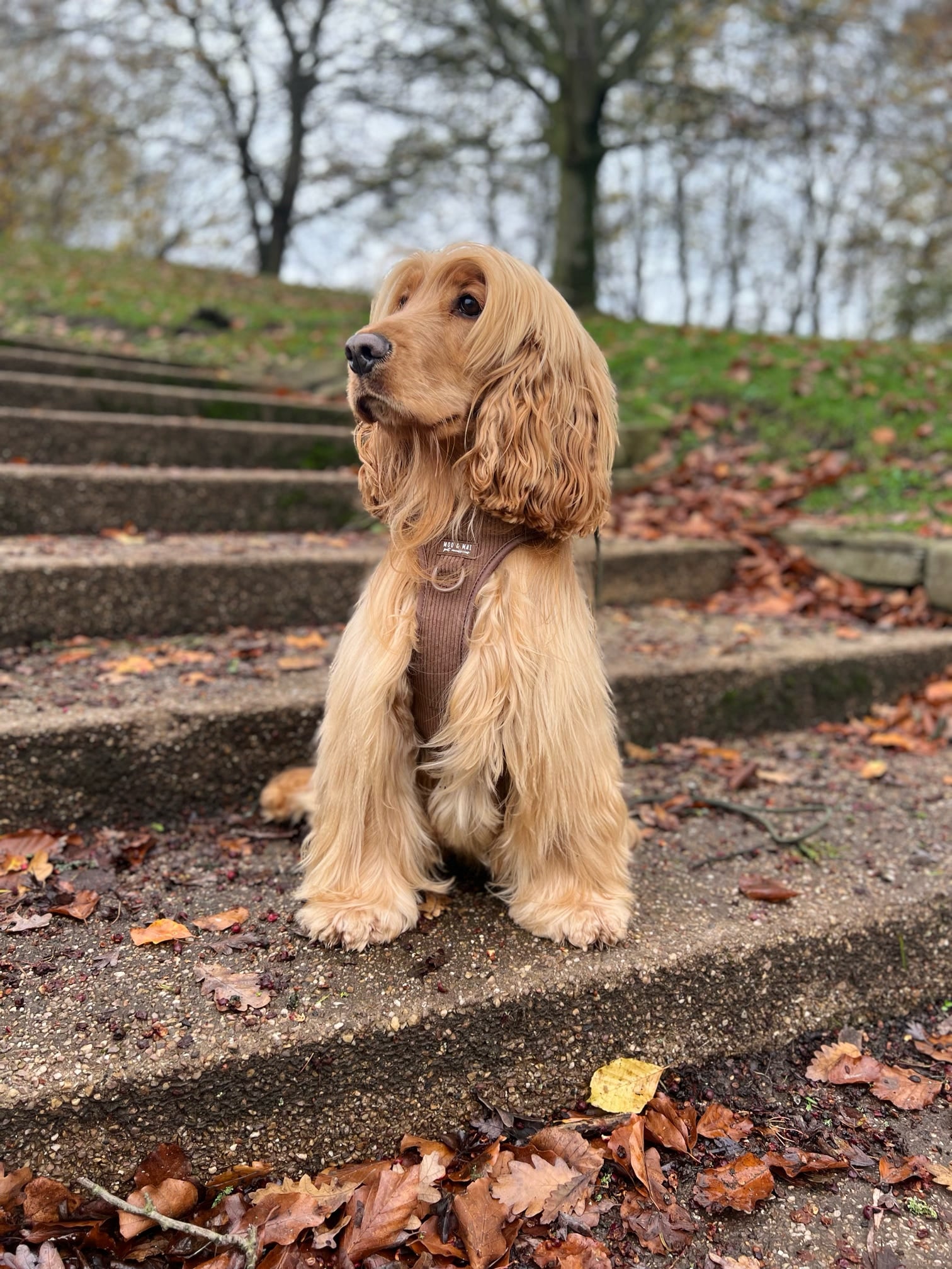 - Reflective trim on the back of the harness which is great for evening walkies!
