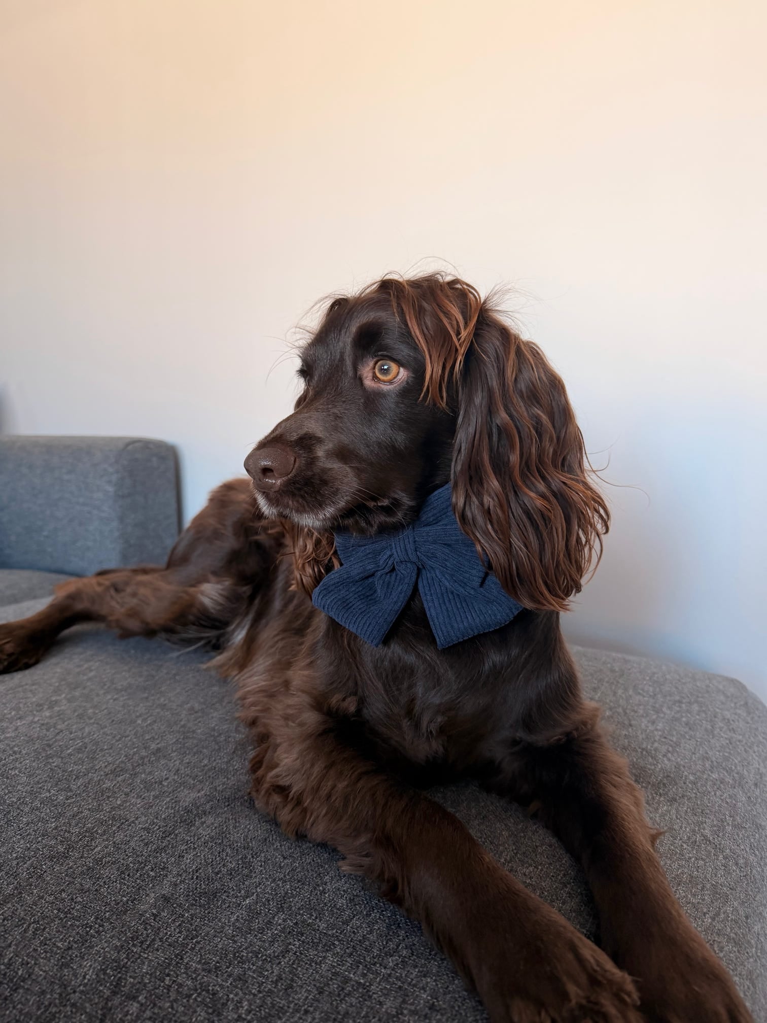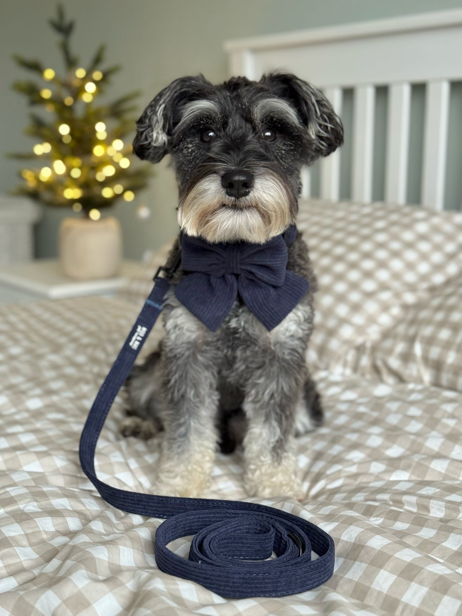The cutest little bow you ever did see, it’s so classy yet so incredibly cute! Our gorgeous Navy Noir corduroy material is thick and luxe, this bow is sure to turn heads on a walkies!