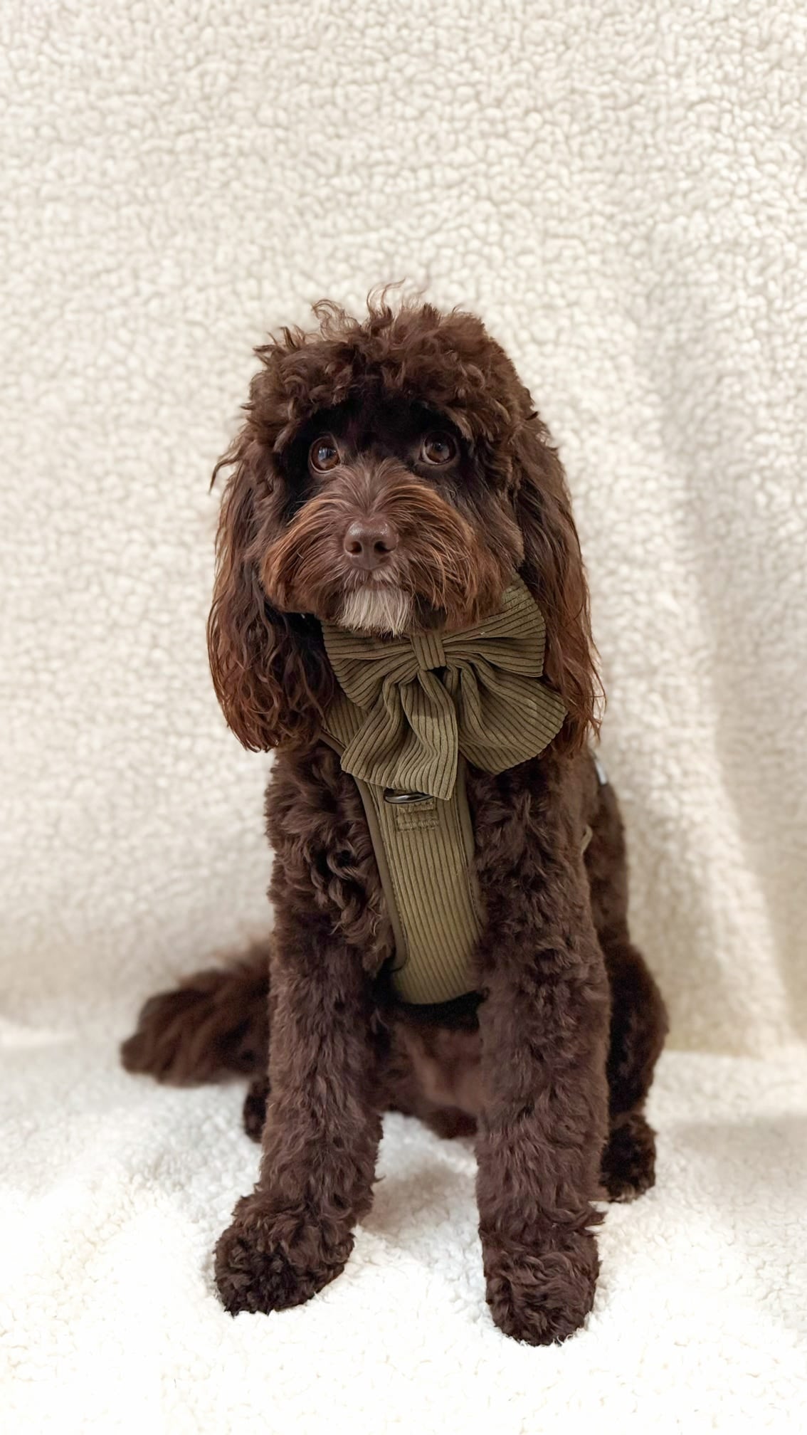 Our gorgeous Olive Branch corduroy material is so soft and cute, this bow is sure to turn heads on a walkies!