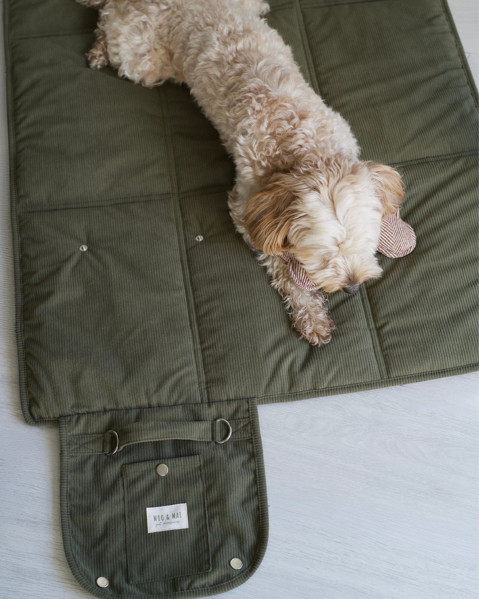 Our Olive corduroy Settle Mat is designed to support calm behaviour, comfort and confidence both at home and out in public places.