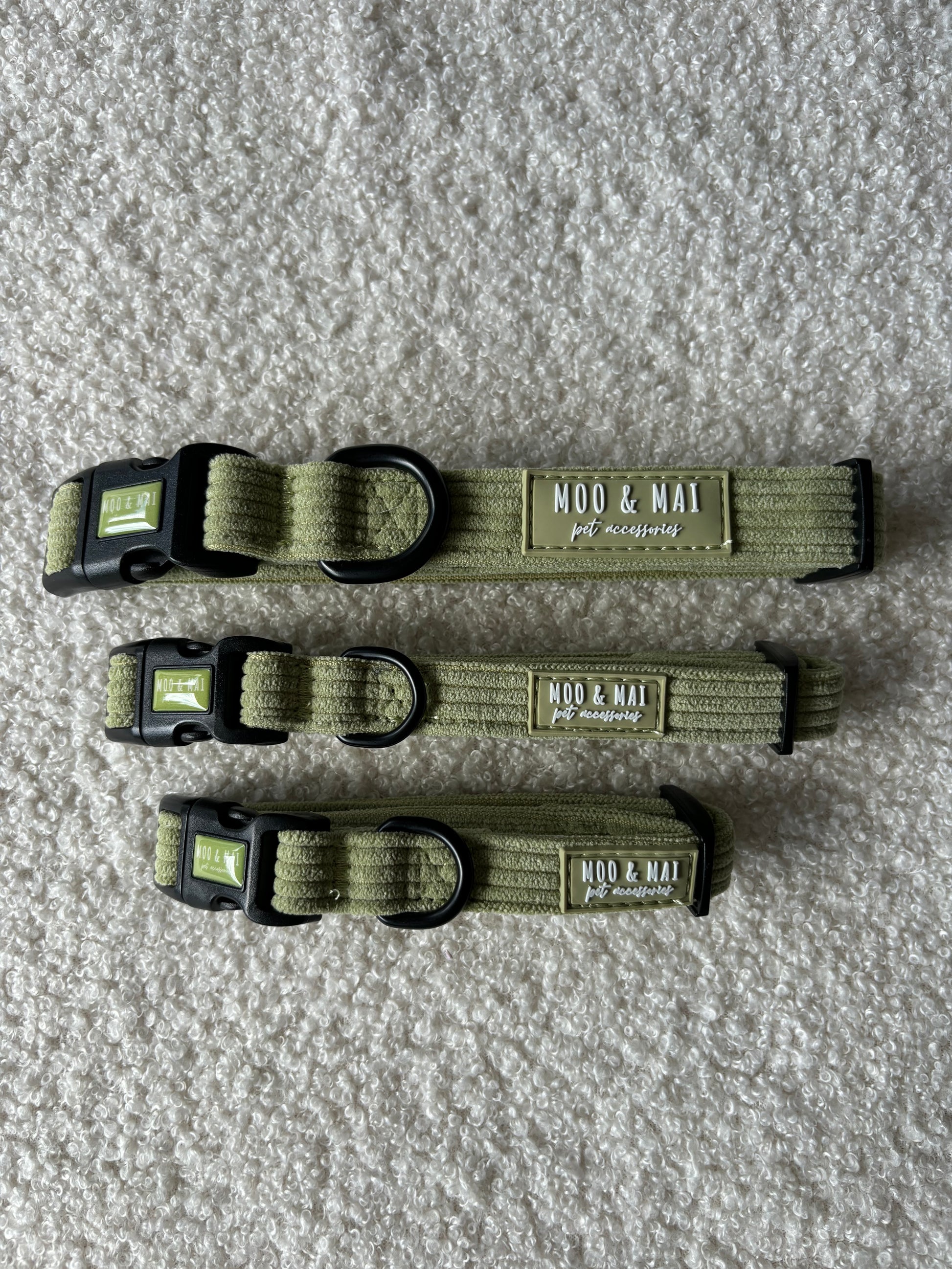Get the full luxury look this summer with this fully adjustable collar in our gorgeous sage green dreamy cord, providing comfort as well as a sturdy D-Ring attachment for pet ID tags/ lead attachment!