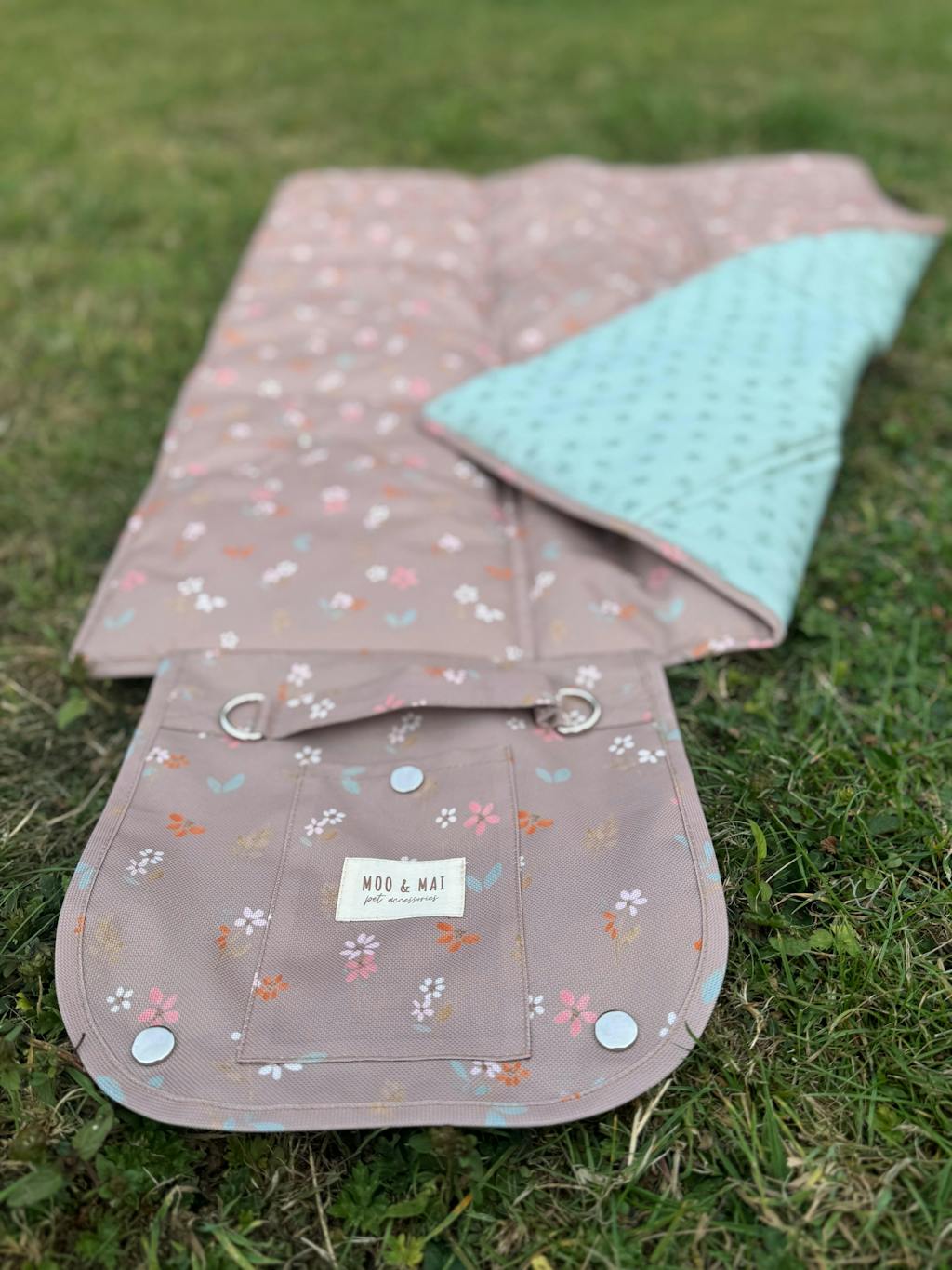 A perfect autumnal addition to your training or adventures, this mat is covered with a warm mocha background and beautiful floral details, paired with a vibrant blue backing, it also has some amazing features so whether you’re doing some settle training at your local cafe or park or maybe off for a pub lunch or heading off for a night away and need some comfort our brand new mats ensure comfort and practicality for every adventure!